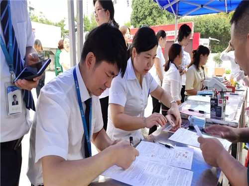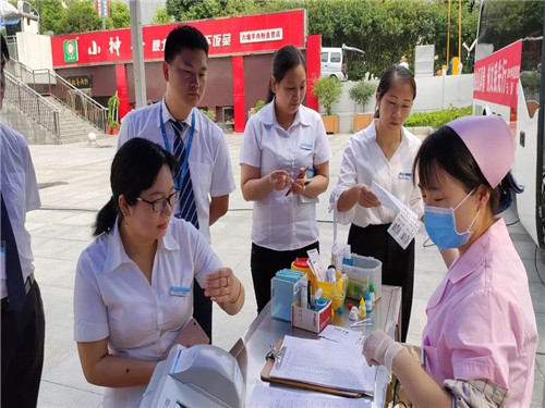 前來(lai)獻血的居然家人們(men)在志愿者的引導下,有序領(ling)表登記(ji),測定血型,量血壓,等待獻血。