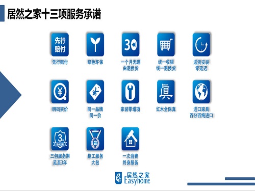 作為家(jia)(jia)居建材行(xing)業(ye)(ye)的(de)龍頭企(qi)業(ye)(ye),居然(ran)之(zhi)家(jia)(jia)發家(jia)(jia)于服務(wu)(wu),一直踐行(xing)著(zhu)“讓(rang)家(jia)(jia)裝(zhuang)和家(jia)(jia)居服務(wu)(wu)快樂(le)簡單”的(de)企(qi)業(ye)(ye)使命,從(cong)2000年以來,居然(ran)之(zhi)家(jia)(jia)累計推出了13項(xiang)服務(wu)(wu)承諾,以優質的(de)服務(wu)(wu)為消費者(zhe)創(chuang)造的(de)良好的購物體驗,維系(xi)著一(yi)批又一(yi)批的新(xin)老(lao)顧客。